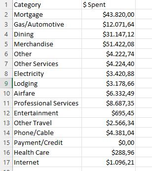 3. In step 3 I imported a transaction history table that was provided in the course and created a spending summary sheet. In this